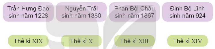 Năm sinh của mỗi nhân vật lịch sử dưới đây thuộc thế kỉ nào?