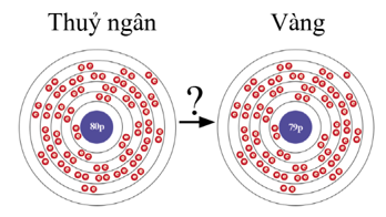Sự biến đổi hạt nhân bằng cách loại đi một proton từ hạt nhân Hg đã biến được thủy ngân thành vàng.