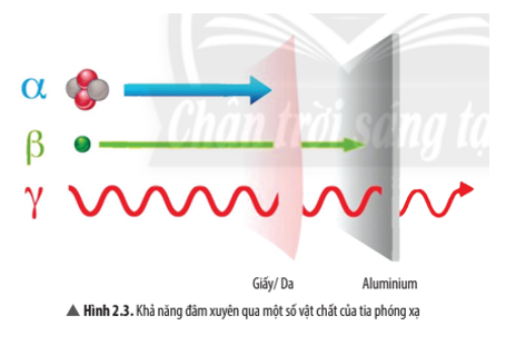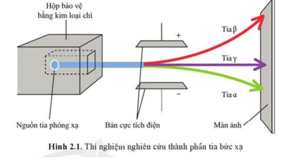 Qua thí nghiệm nghiên cứu thành phần tia bức xạ từ phóng xạ tự nhiên (Hình 2.1), hãy cho biết các dòng hạt α, β, γ mang điện tích dương, âm hay không mang điện.