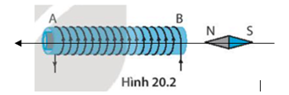 Một kim nam châm đặt trước đầu ống dây của nam châm điện (H.20.3). Đổi chiều dòng điện chạy trong ống dây có hiện tượng gì xảy ra? Giải thích.