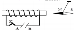 Một ống dây dẫn bên trong có một lõi sắt non, được đặt khá gần một kim nam châm như mô tả trong hình vẽ dưới đây. Hiện tượng gì sẽ xảy ra với kim nam châm khi đóng công tắc cho dòng điện chạy qua ống dây?