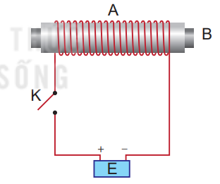 Trong lòng một ống dây có dòng điện một chiều chạy qua có từ trường. Khi đặt thanh thép vào thì thanh thép sẽ bị nhiễm từ tính và trở thành một nam châm.