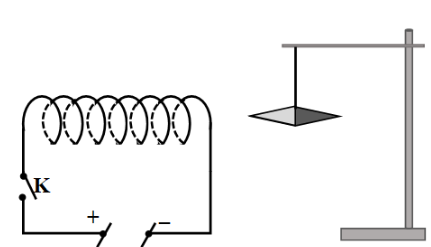 Kim nam châm bị đẩy ra xa ống dây và dừng lại, dây treo kim nam châm tạo thành với phương thẳng đứng một góc nào đó