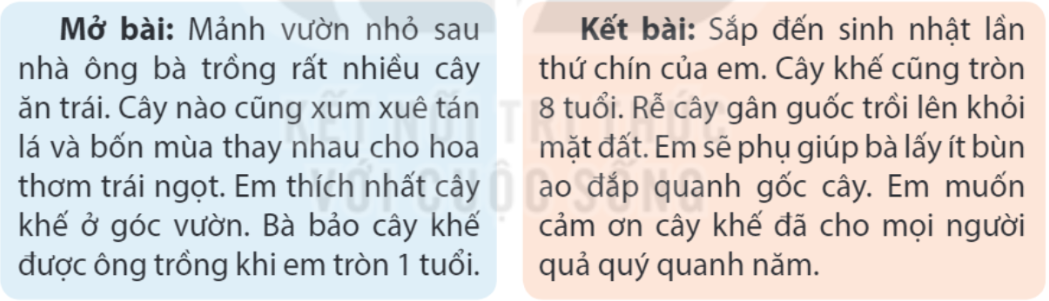 Đọc bài văn sau và trả lời câu hỏi. Mở bài giới thiệu thế nào về cây khế. Ở đoạn kết, cây khế được nhận xét như thế nào. Cách mở bài và kết bài dưới đây có gì khác với cách mở bài và kết bài của bài văn trên. Xếp các mở bài, kết bài ở hai bài tập trên vào nhóm thích hợp. Tìm đọc những bài văn miêu tả cây cối để học tập cách viết mở bài, kết bài.