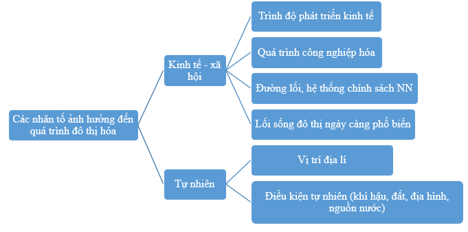 Vẽ sơ đồ khái quát các nhân tố ảnh hưởng đến đô thị hóa