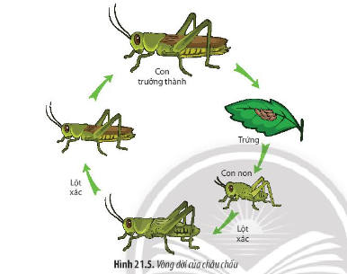Quan sát Hình 21.5, nhận xét sự khác biệt về hình thái của con non qua mỗi lần lột xác kế tiếp nhau