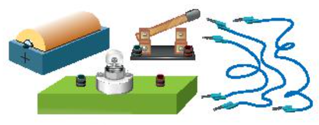 Có một pin, một bóng đèn pin, một công tắc, các đoạn dây nối (hình bên).