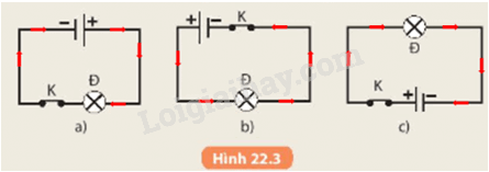 4. Mũi tên chỉ chiều dòng điện trong các sơ đồ mạch điện ở Hình 22.3.