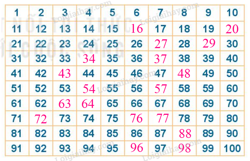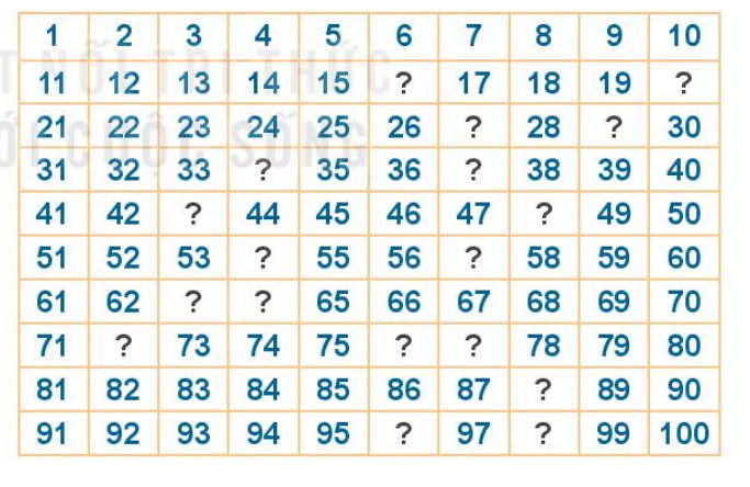 Tìm số còn thiếu trong bảng các số từ 1 đến 100.