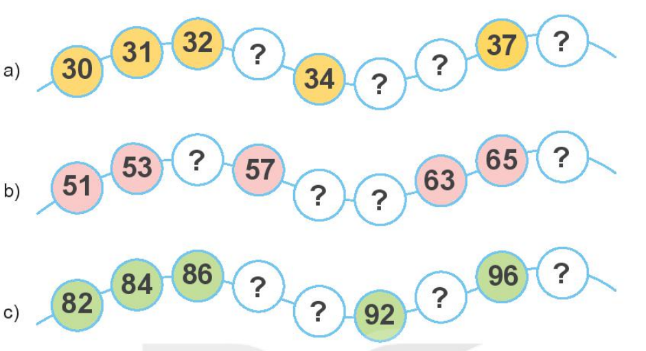 Điền các số thích hợp để được dãy các số tăng dần 1 đơn vị, 2 đơn vị.