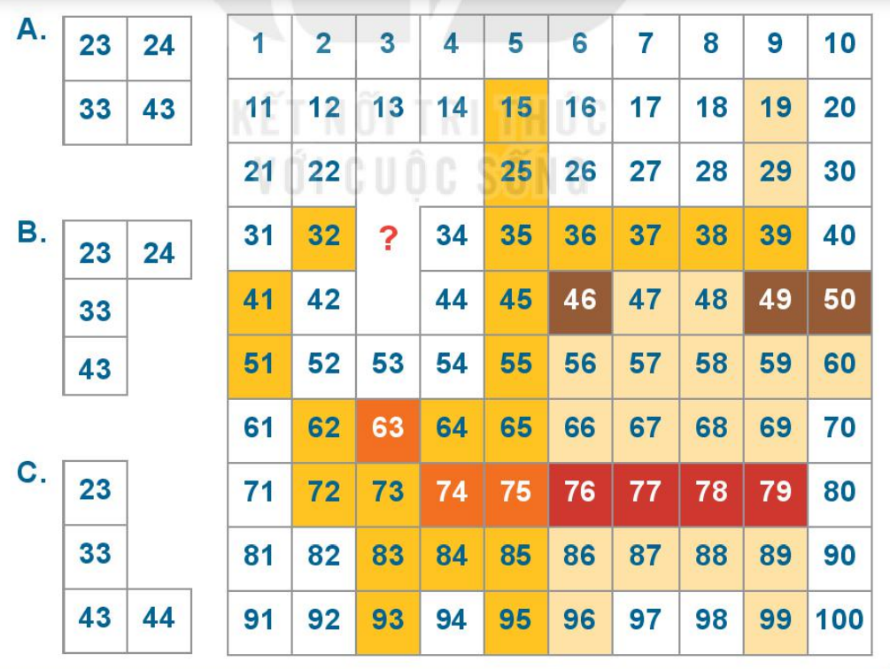 Tìm số còn thiếu trong bảng các số từ 1 đến 100.
