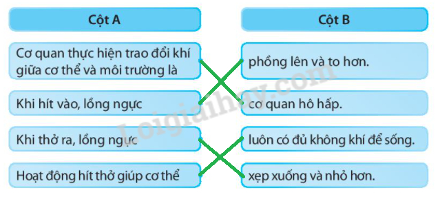 Nối thông tin ở cột A với cột B sao cho phù hợp.