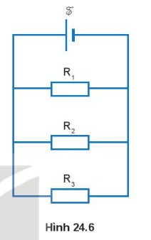 Cho mạch điện như Hình 24.6. Suất điện động ξ = 10V, bỏ qua điện trở trong của nguồn. Các giá trị điện trở R1 = 20 Ω, R2 = 40 Ω, R3 = 50 Ω