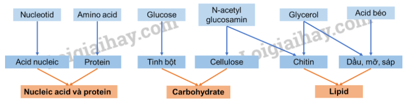 Trình bày tóm tắt bằng sơ đồ hệ thống các quá trình tổng hợp các chất hữu cơ đa phân tử của vi sinh vật.