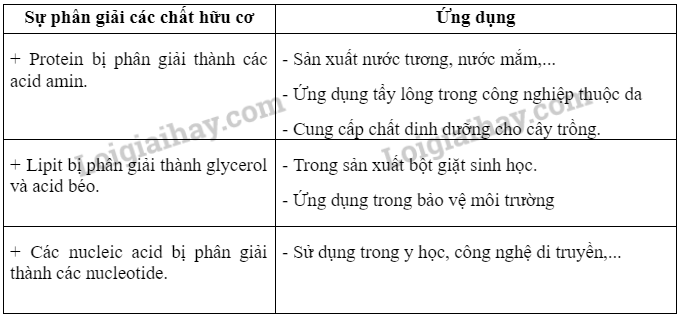 Câu 4: Các chất hữu cơ đa phân tử được phân giải như thế nào? Ứng dụng của các quá trình này trong đời sống là gì?