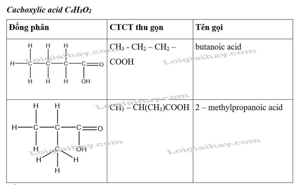 Viết công thức cấu tạo và gọi tên theo danh pháp thay thế của các aldehyde, ketone có công thức phân tử C4H8O và carboxylic acid có công thức phân tử C4H8O2.