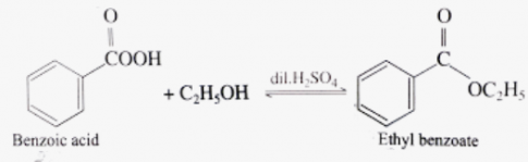 : Ethyl benzoate là hợp chất chính tạo mùi thơm của quả anh đào (cherry). Hãy viết phương trình hoá học của phản ứng tổng hợp ethyl benzoate từ carboxylic acid và alcohol tương ứng.