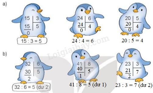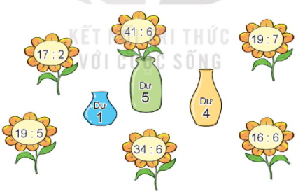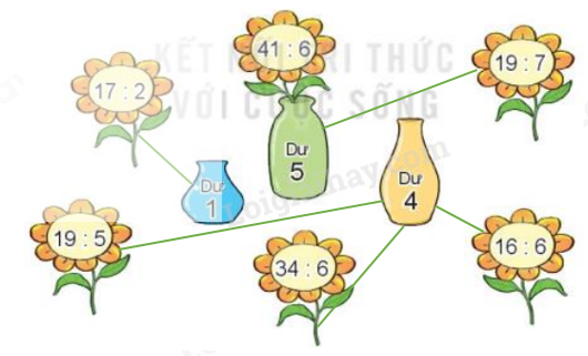 Thực hiện phép chia rồi nối số mỗi phép tính với số dư tương ứng.