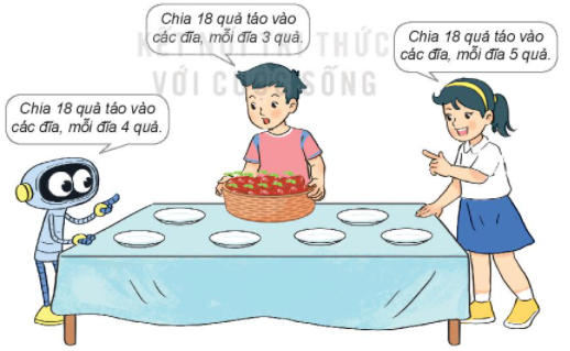Vậy cách chia táo của bạn nam cho ta phép chia hết, cách chia táo của Rô-bốt và bạn nữ cho ta phép chia có dư.