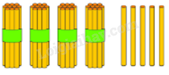Nhìn hình ta có: 4 bó đũa và 5 chiếc đũa.