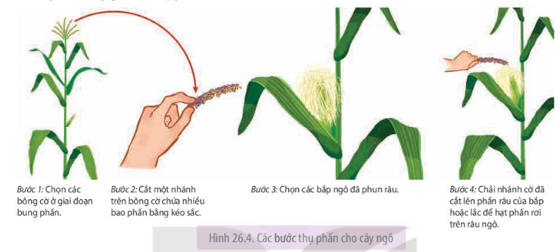Em hãy đề xuất thêm một phương pháp thu hạt phấn ngô đã hạn chế việc thất thoát hạt phấn trong quá trình cắt nhánh bông cờ ở bước 2 trong quy trình thụ phấn cho ngô mô tả ở Hình 26.4.