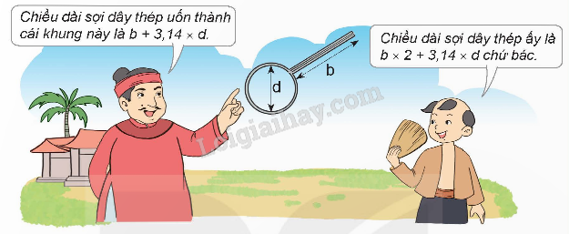 Chiều dài sợi dây thép uốn thành cái khung là: 3,14 x d + b x 2