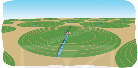 Ở một vùng sa mạc, người ta trồng lúa trên những thửa ruộng có dạng hình tròn bán kính 50m. Biết rằng có