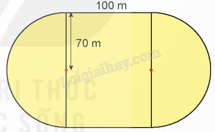 Một sân vận động được xây dựng trên mảnh đất tạo bởi một hình chữ nhật và hai nửa hình tròn có kích thước như hình bên. Diện tích mảnh đất đó là ? m2