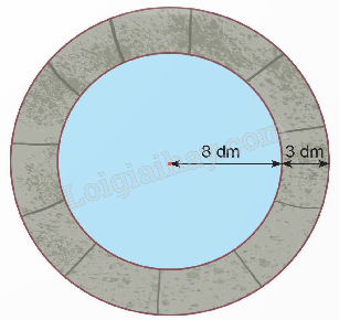 Một giếng nước có miệng giếng là một hình tròn bán kính 8 dm. Người ta xây thành giếng trên phần đất rộng 3 dm bao quanh miệng giếng (như hình dưới đây). Tính diện tích phần đất xây thành giếng đó.