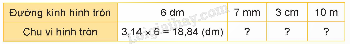 Muốn tính chu vi của hình tròn ta lấy số 3,14 nhân với đường kính.