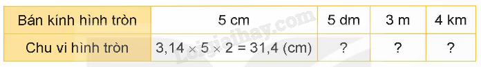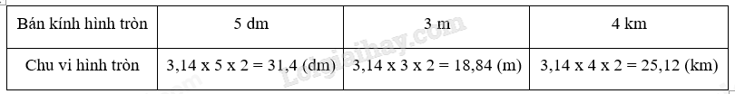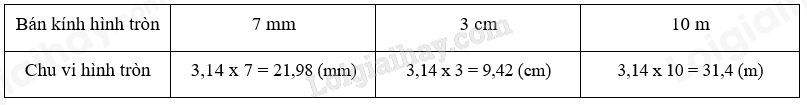Muốn tính chu vi của hình tròn ta lấy số 3,14 nhân với bán kính rồi nhân với 2.