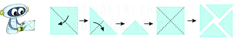 Giải Bài 27. Thực hành gấp, cắt, ghép, xếp hình. Vẽ đoạn thẳng trang 106, 107, 108, 109 SGK Toán 2 Kết nối tri thức với cuộc sống. Bài 1. Dùng một tờ giấy hình chữ nhật, gấp rồi cắt thành một hình vuông và một hình chữ nhật (theo mẫu).
