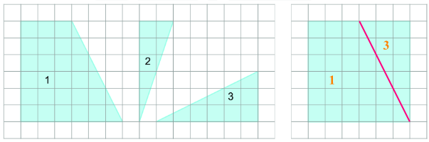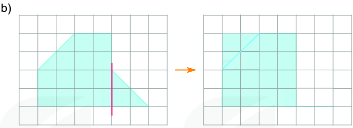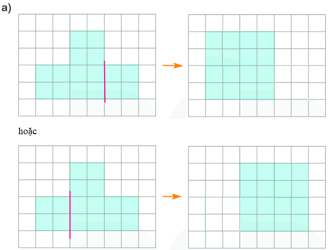 Quan sát hình vẽ đã cho, cắt hình đã cho thành hai phần thích hợp để ghép lại được một hình vuông.