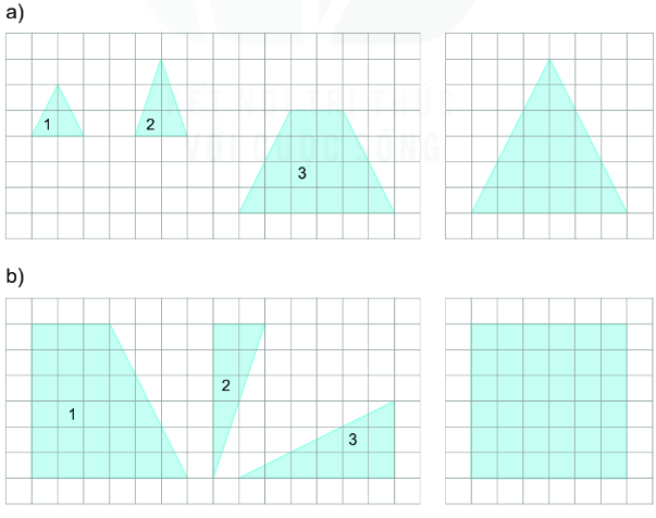 a) Ghép hình 1 và hình 3 sẽ được hình ở cột bên phải.