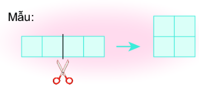 Cắt hình đã cho thành hai phần để ghép lại được một hình vuông (theo mẫu).