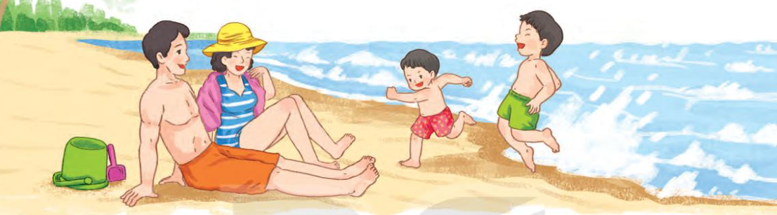 Quan sát tranh một gia đình đang đi biển