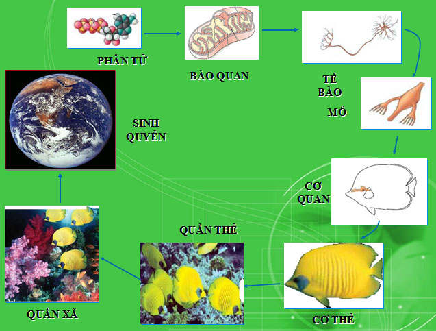 Các cấp độ cơ bản của tổ chức sống bao gồm: