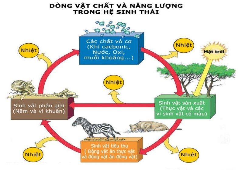 – Nguồn năng lượng cung cấp cho thế giới sống chủ yếu đến từ mặt trời và được truyền từ cấp độ tổ chức này sang cấp độ tổ chức khác của thế giới sống cùng với sự chuyển hóa của vật chất.