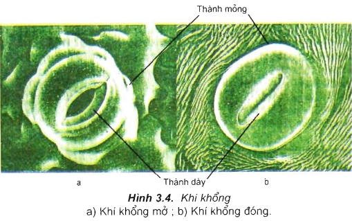 3. Tế bào khí khổng có vách dày mỏng không đều; thành trong sát lỗ khí dày hơn nhiều so với thành ngoài.