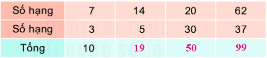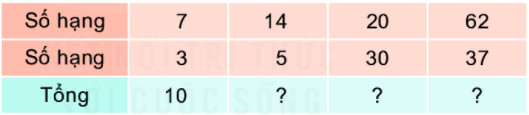 – Áp dụng công thức: Số hạng + Số hạng = Tổng.