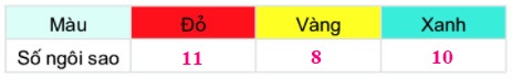 b) Tính tổng của số ngôi sao màu đỏ và số ngôi sao màu vàng.