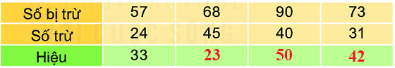 Để tìm hiệu ta lấy số bị trừ trừ đi hiệu.