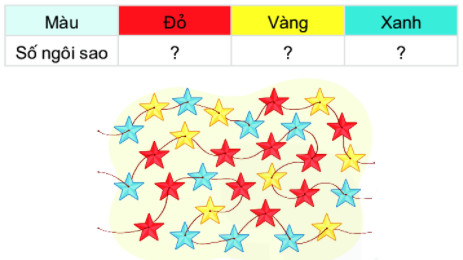 a) Quan sát hình vẽ rồi đếm số ngôi sao màu đỏ, vàng, xanh.