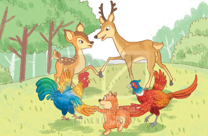 a. Các con vật trong tranh đang tay trong tay xếp thành vòng tròn.