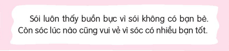b. Sói hỏi sóc là: Vì sao bọn sóc các ngươi cứ nhảy nhót vui đùa suốt ngày, còn ta lúc nào cũng thấy buồn bực?