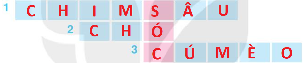 b. Nhân vật ở hàng dọc màu hồng là: Sóc.