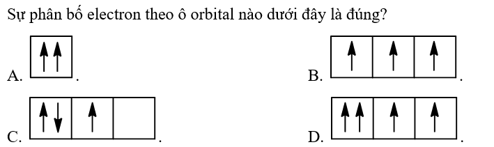 Dựa vào nguyên lí Pauli: Mỗi orbital chỉ chứa tối đa 2 electron và có chiều tự quay ngược nhau