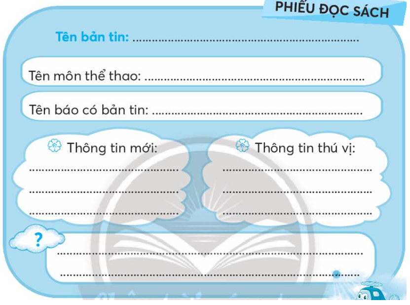 Viết vào Phiếu đọc sách những thông tin chính sau khi đọc một bản tin thể thao.