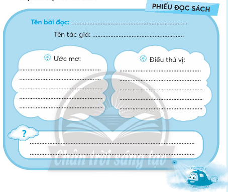 Viết vào Phiếu đọc sách những thông tin chính sau khi đọc một bài đọc về ước mơ.