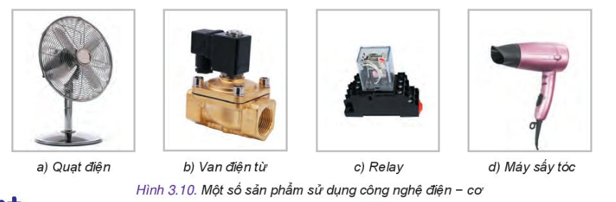 Quan sát hình 3.10 và cho biết mỗi sản phẩm sử dụng công nghệ điện – cơ trong các hình a,b,c,d thuộc loại động cơ dạng quay hay dạng tịnh tiến